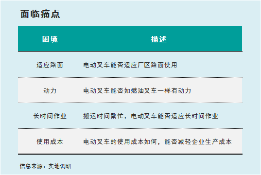 對(duì)陶瓷行業(yè)而言,壓力不僅來(lái)自市場(chǎng)銷(xiāo)售,成本高啟,還有環(huán)保問(wèn)題。該企業(yè)同樣存在這樣的難題,一邊要承受市場(chǎng)的壓力,一邊要綠色生產(chǎn),推動(dòng)技術(shù)和設(shè)備的更新升級(jí)。在該企業(yè)決定改變以燃油叉車(chē)為主要搬運(yùn)設(shè)備時(shí),也考慮了很多問(wèn)題。